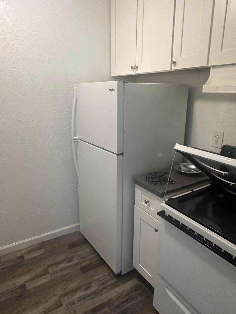 This downstairs unit has 1 bedroom, 1 bathroom, with 660 sq. ft., This unit is completely remodeled. It has plank flooring throughout easy close cabinets, granite countertops